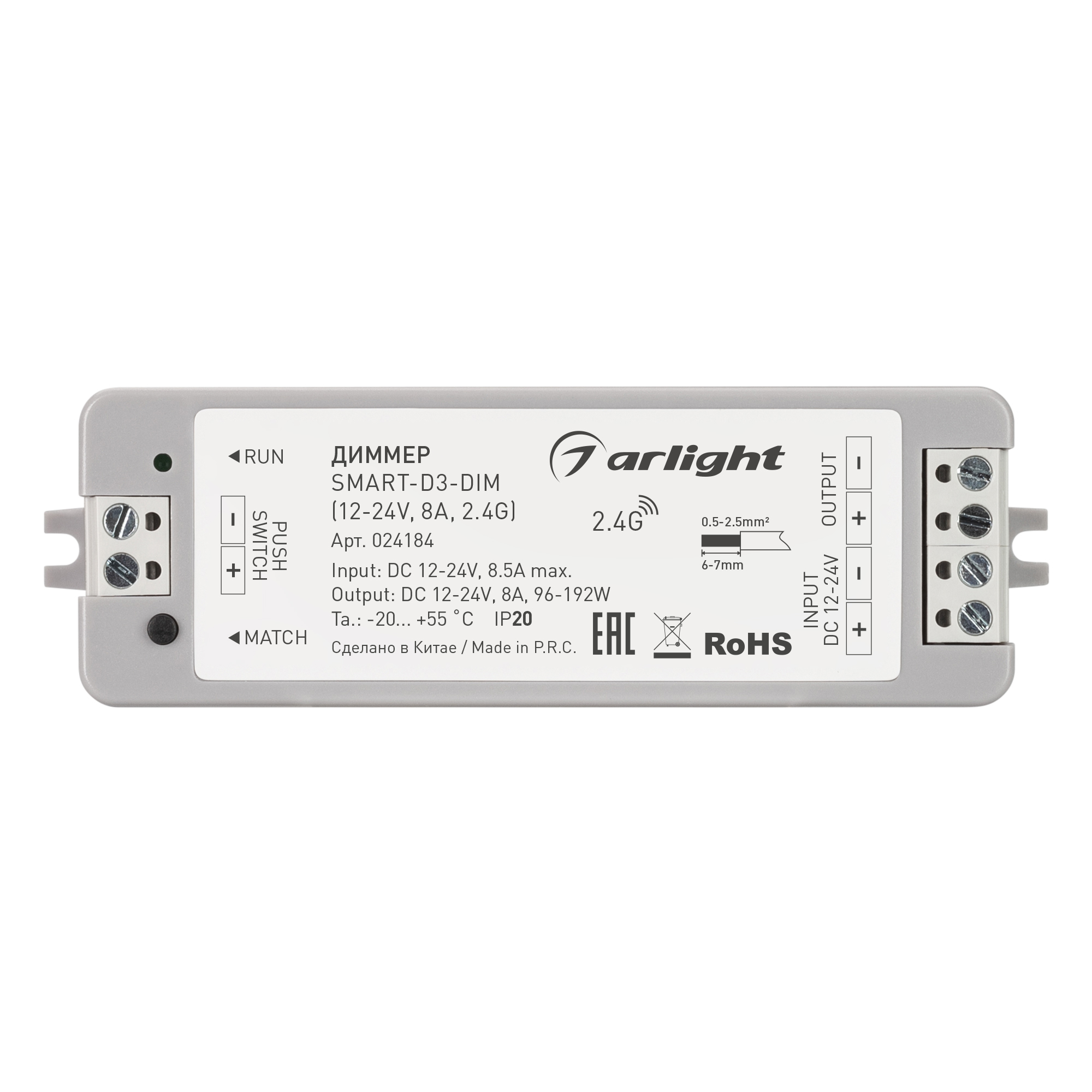 Диммер SMART-D3-DIM (12-24V, 8A, 2.4G) (Arlight, IP20 Пластик, 5 лет) 024184 в Нижнем Новгороде