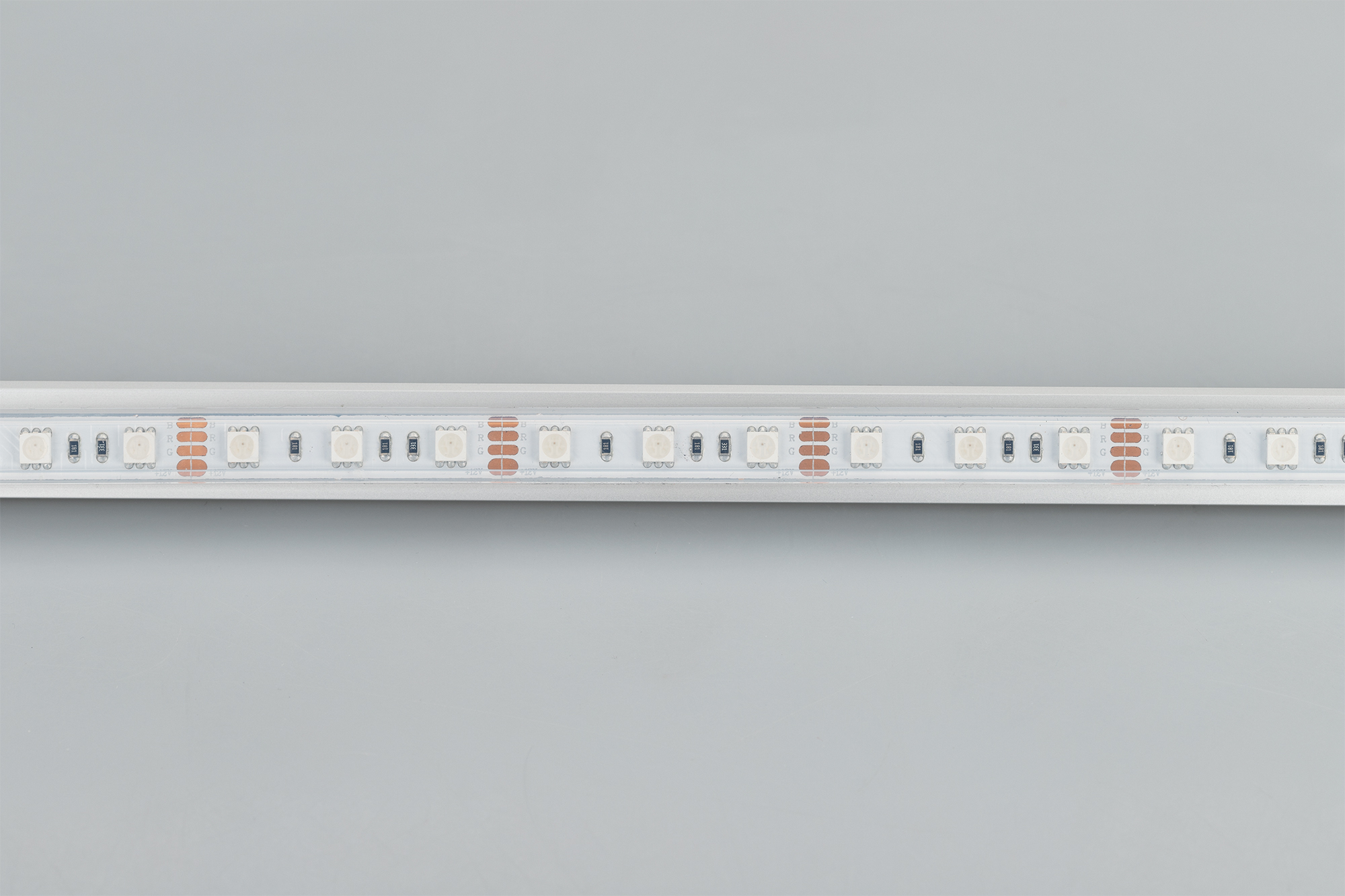 Герметичная мультицветная лента LUX шириной 13 мм с высокой степенью пылевлагозащиты IP66 (в силиконовой трубке) и RGB-светодиодами SMD 5060 (60 шт/м). Мощность 14.4 Вт/м, напряжение питания 12 В. Широкий шаг между светодиодами создает эффект видимых точек светодиодов. Освещение интерьеров и создание декоративной подсветки. Использование во влажных помещениях. Оформление наружной рекламы и витрин. Управляется RGB-контроллером. Минимальный отрезок 50 мм (3 светодиода).